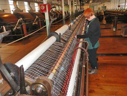 Spinning demonstration and talk in the Carding and Spinning room using the various machines such as carders, the derby doubler and the spinning. It has a full language of its own if you can recall the names of the processes. Slivering? Photo of the excellent guide.