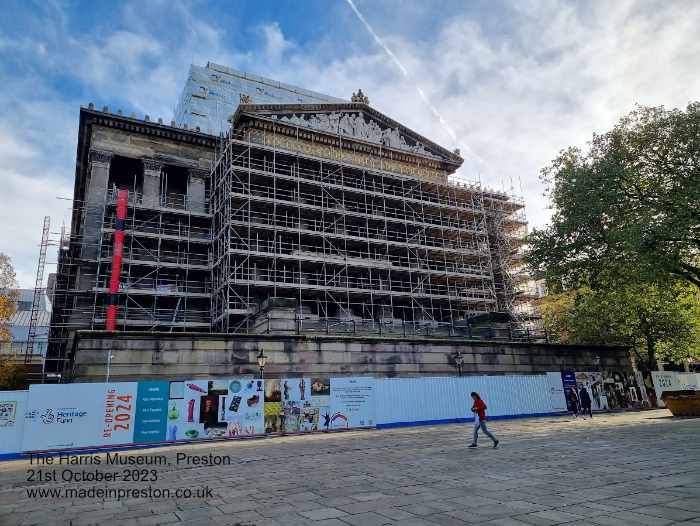 Photo of the Harris Museum, Art Gallery and Library while being refurbished June 2023.