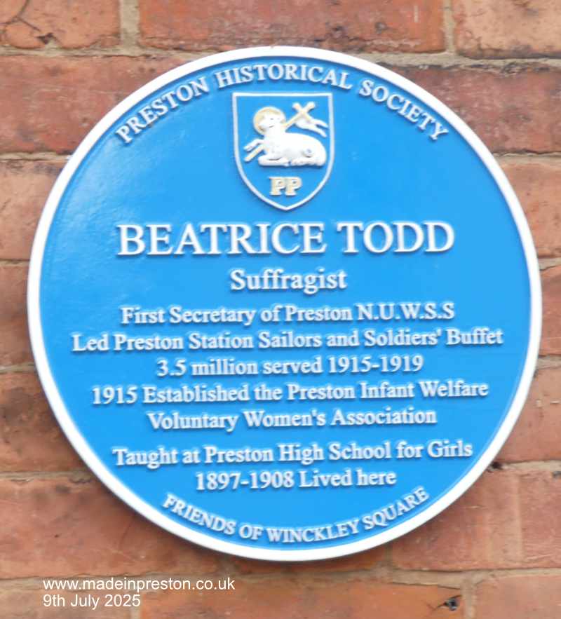 From the Harris Institute at Avenham to Winckley Square we notice 2 Blue Plaques: Avice Margaret Pimblett and Beatrice Todd.